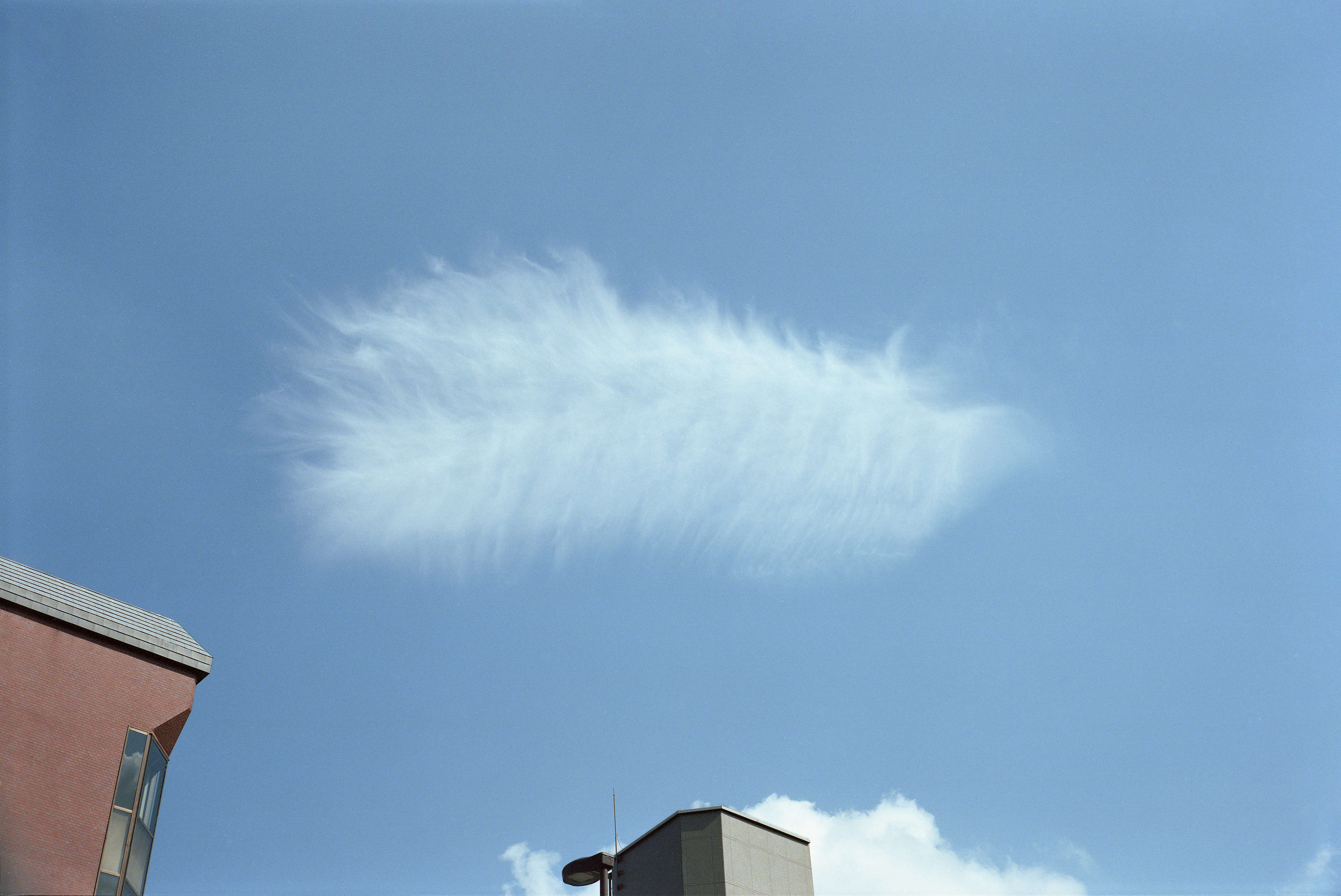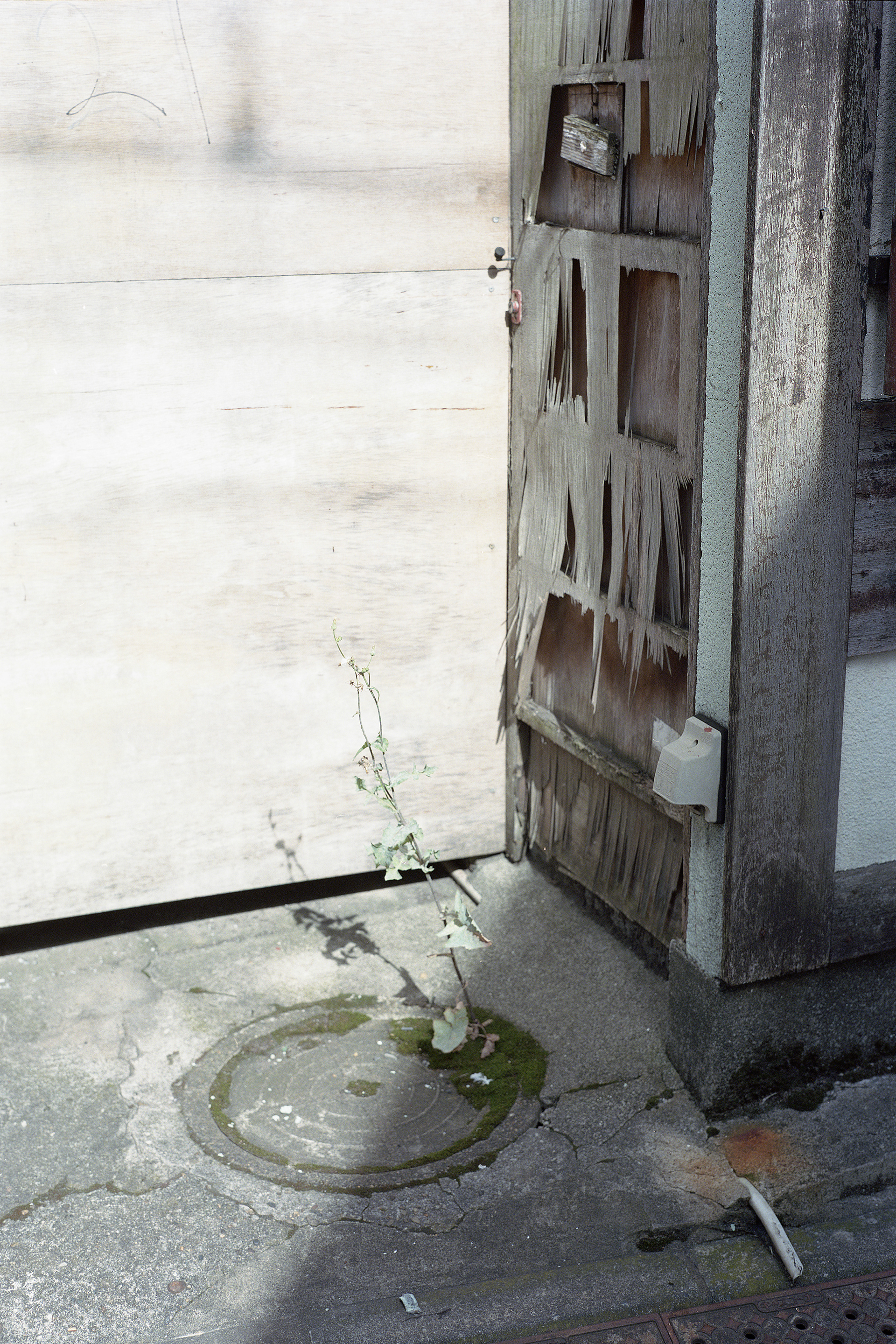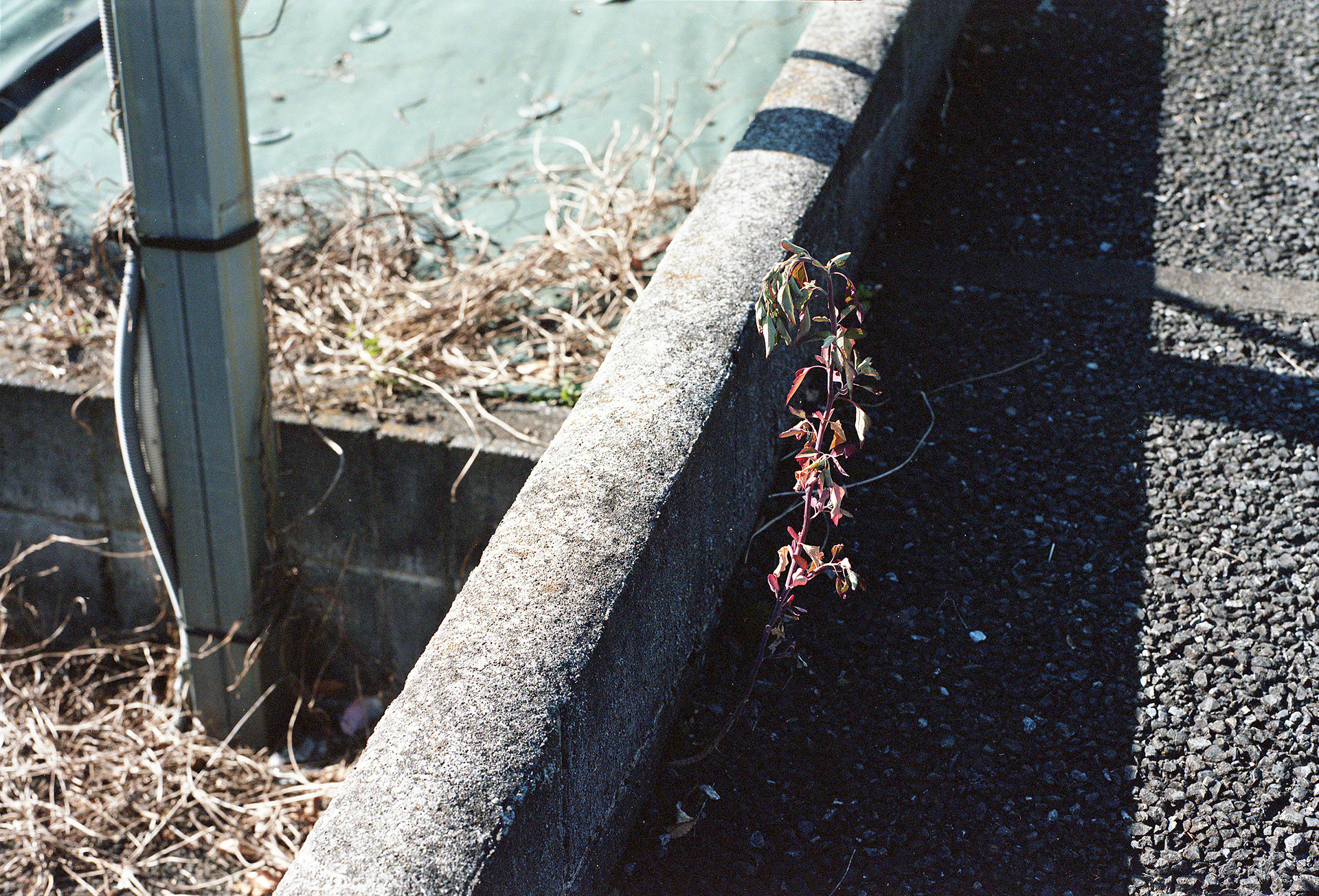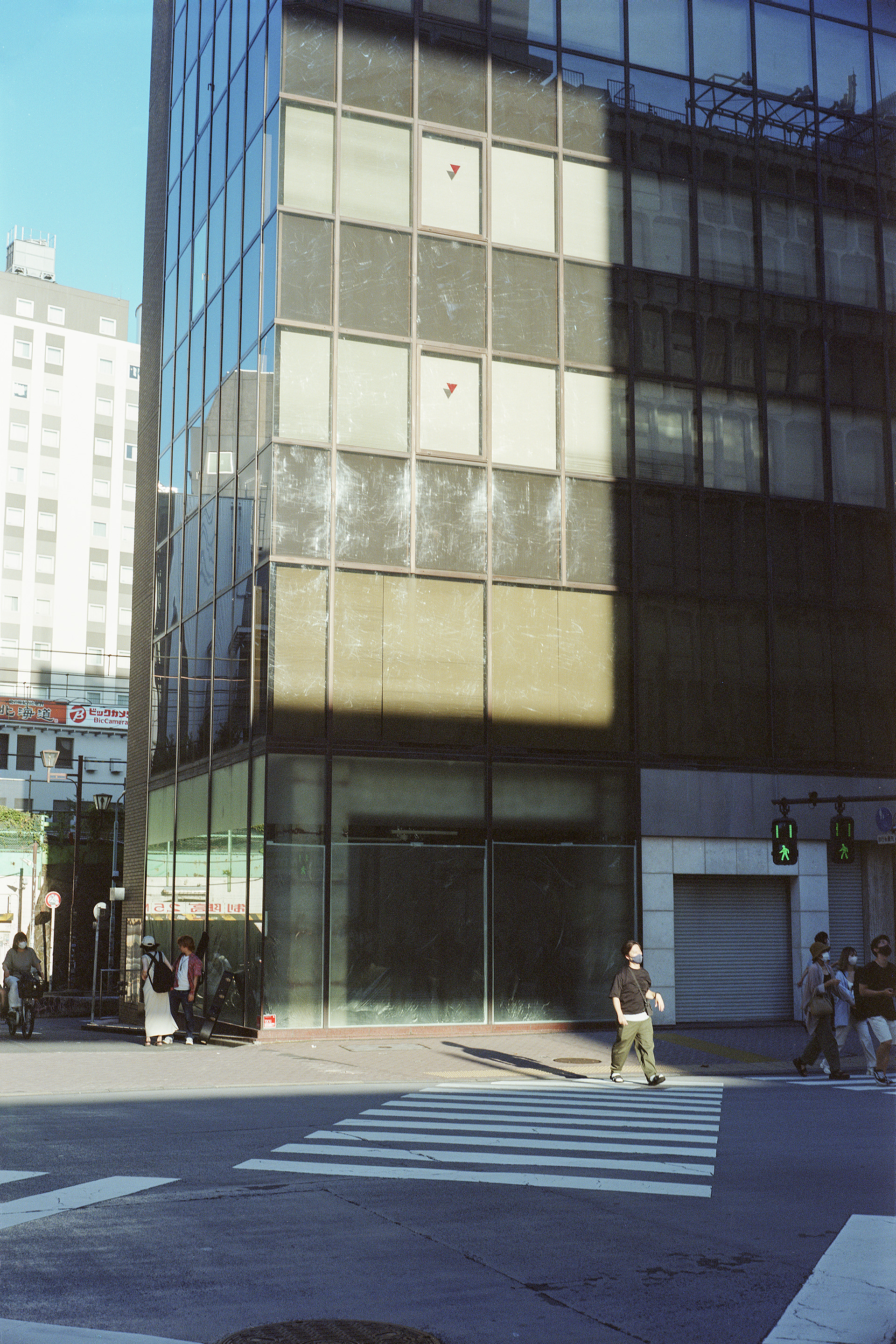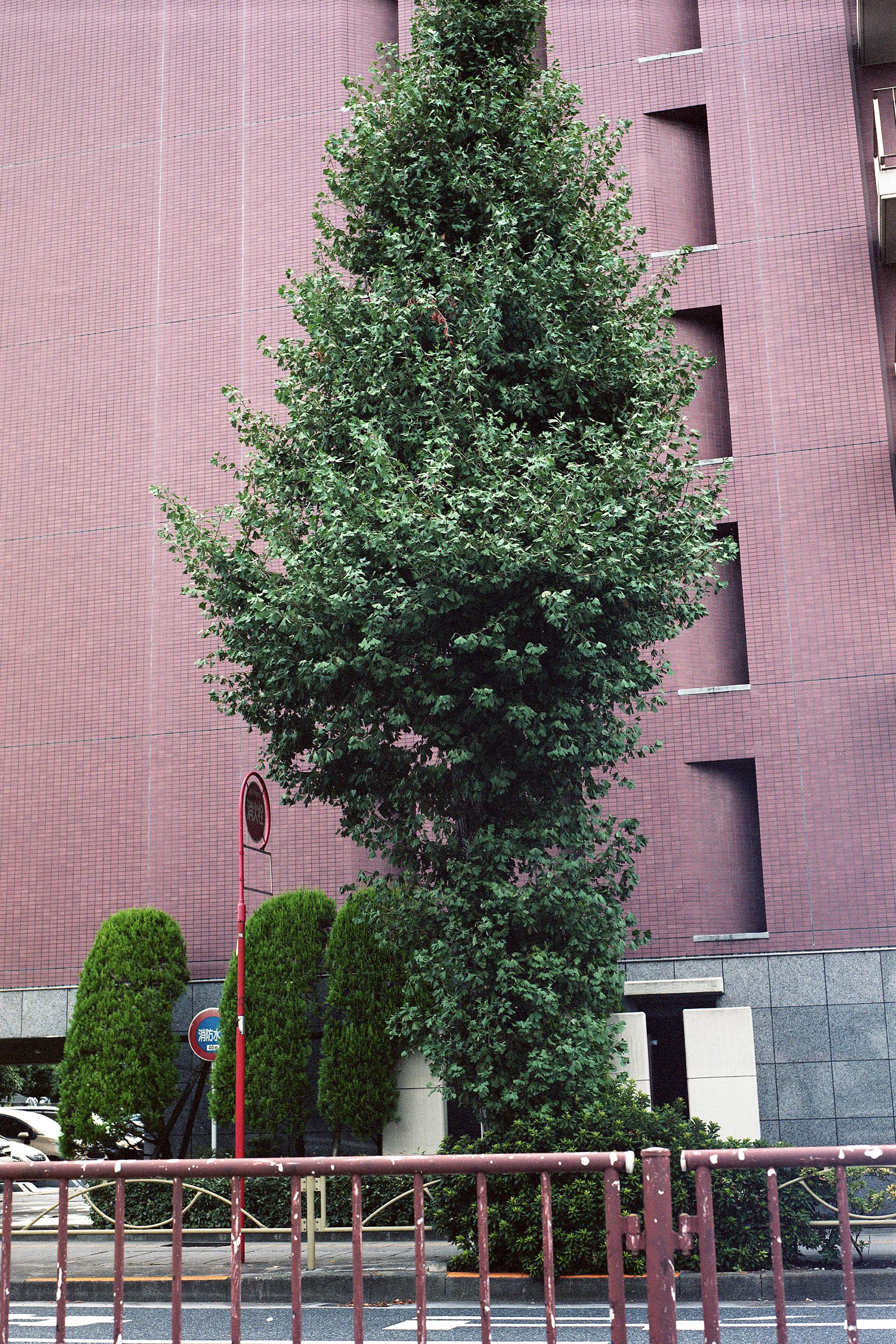 さらに外へ。商業施設の外壁に張られた網目に、風に運ばれてきた枯葉がひっそりと付着している。等間隔のメッシュを横切るように葉脈の微細な線が重なり、人工の秩序と自然の偶然が、図案の上で一枚の作法を編み直す。葉はただ留まっているのではない。そこに留まることで、視線の通り道をわずかにねじり、網の「機能」を別の意味の格子へと変換する。インデックス以上に、情動の付着は、物質的にも、大脳皮質的にも経験される。見逃してしまいそうな軽さと、見続けてしまう粘りーその矛盾に、写真はよく耐える。露光の一回性は、この偶然をやり直し不能の配置として歴史化し、網と葉の接触が、秩序/逸脱・制御/流動という対立軸を単なる概念ではなく、表面に貼られた緊張として保存する。