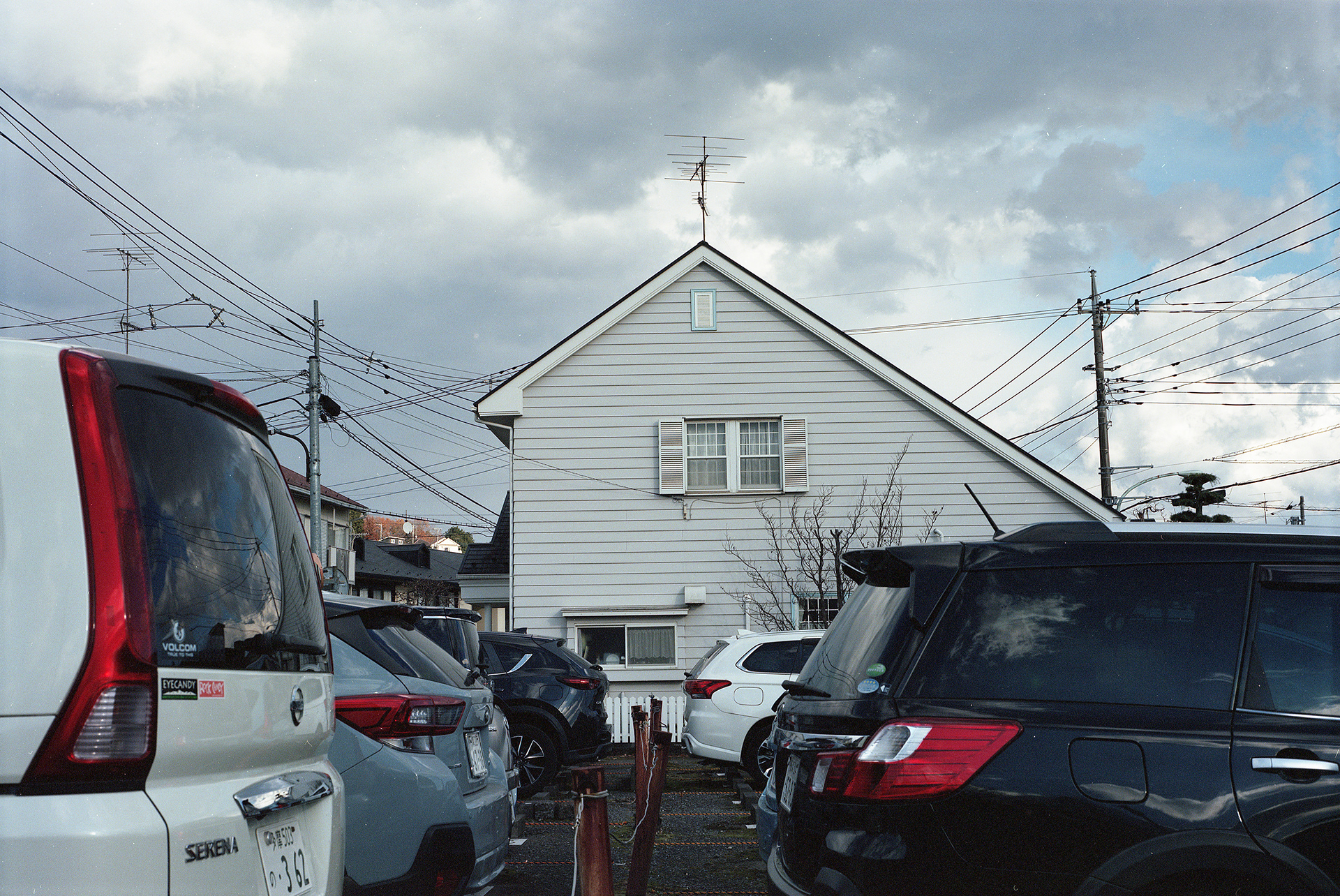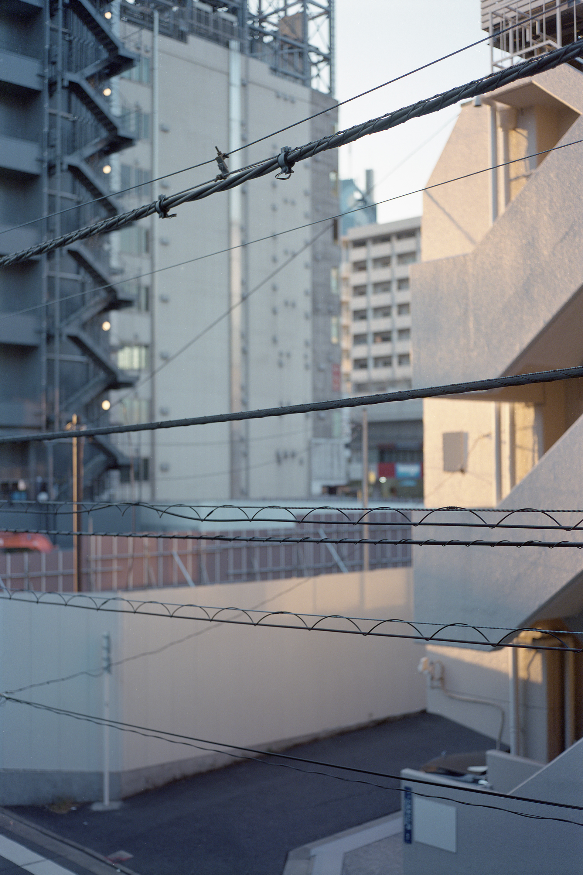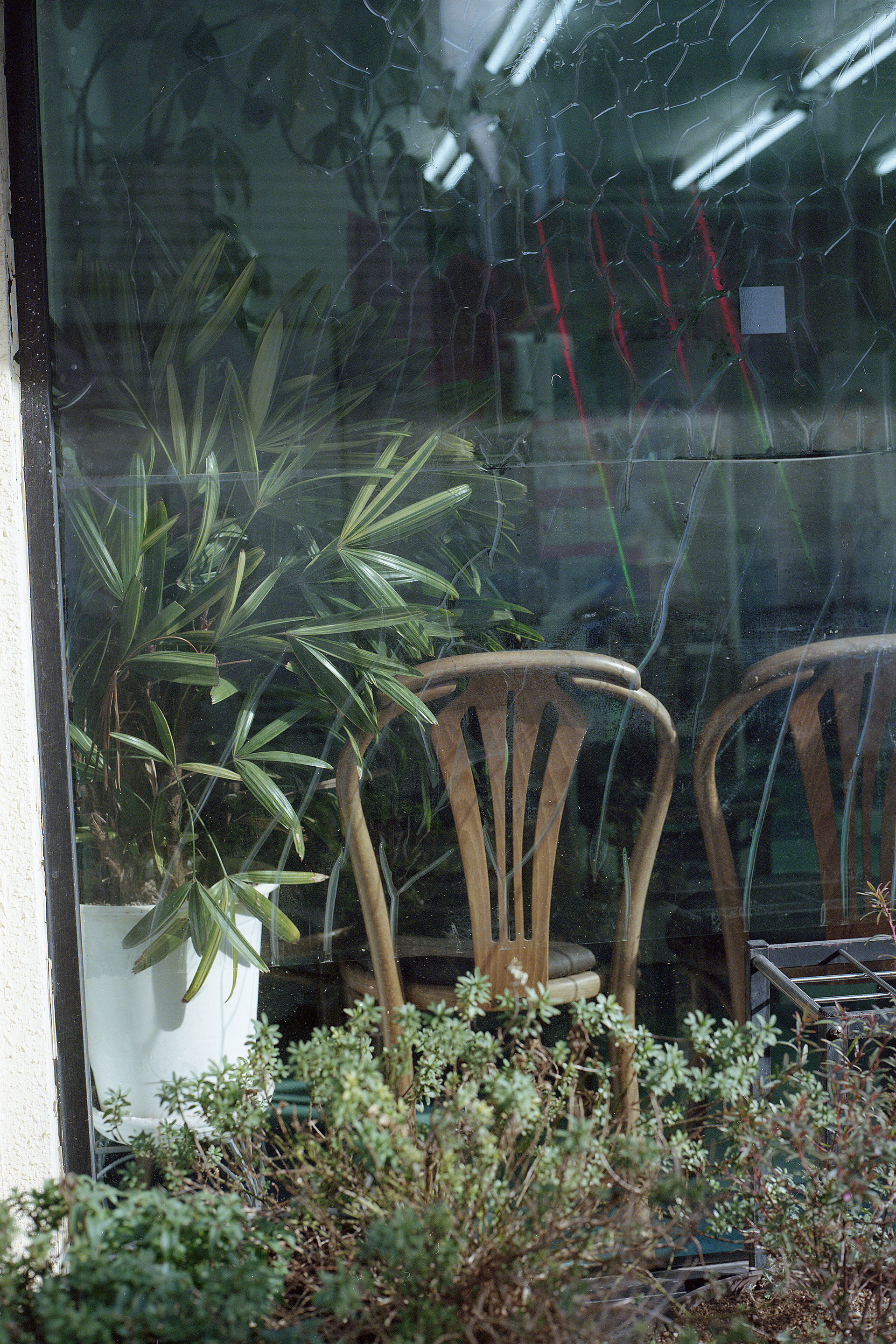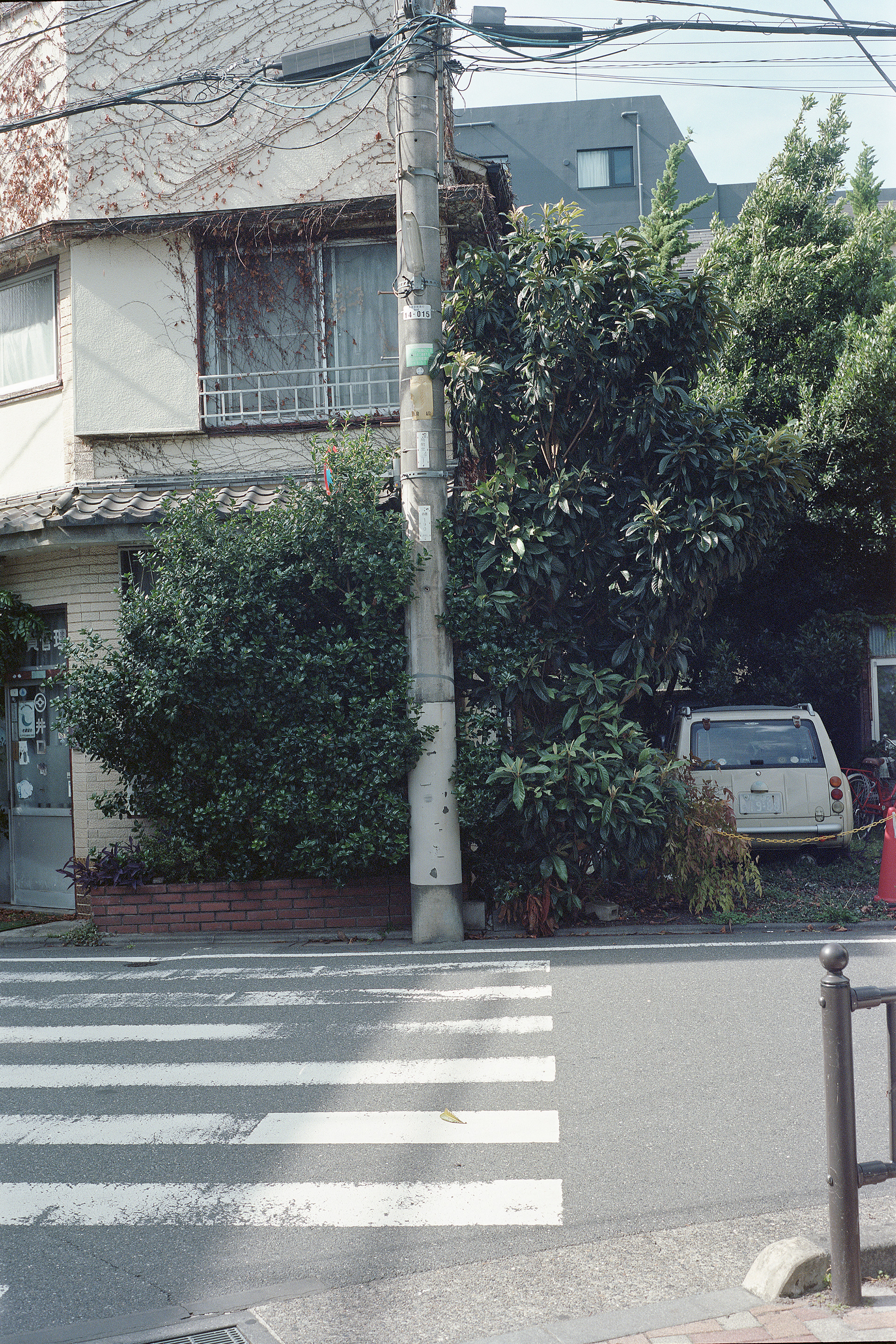 さらに外へ。商業施設の外壁に張られた網目に、風に運ばれてきた枯葉がひっそりと付着している。等間隔のメッシュを横切るように葉脈の微細な線が重なり、人工の秩序と自然の偶然が、図案の上で一枚の作法を編み直す。葉はただ留まっているのではない。そこに留まることで、視線の通り道をわずかにねじり、網の「機能」を別の意味の格子へと変換する。インデックス以上に、情動の付着は、物質的にも、大脳皮質的にも経験される。見逃してしまいそうな軽さと、見続けてしまう粘りーその矛盾に、写真はよく耐える。露光の一回性は、この偶然をやり直し不能の配置として歴史化し、網と葉の接触が、秩序/逸脱・制御/流動という対立軸を単なる概念ではなく、表面に貼られた緊張として保存する。