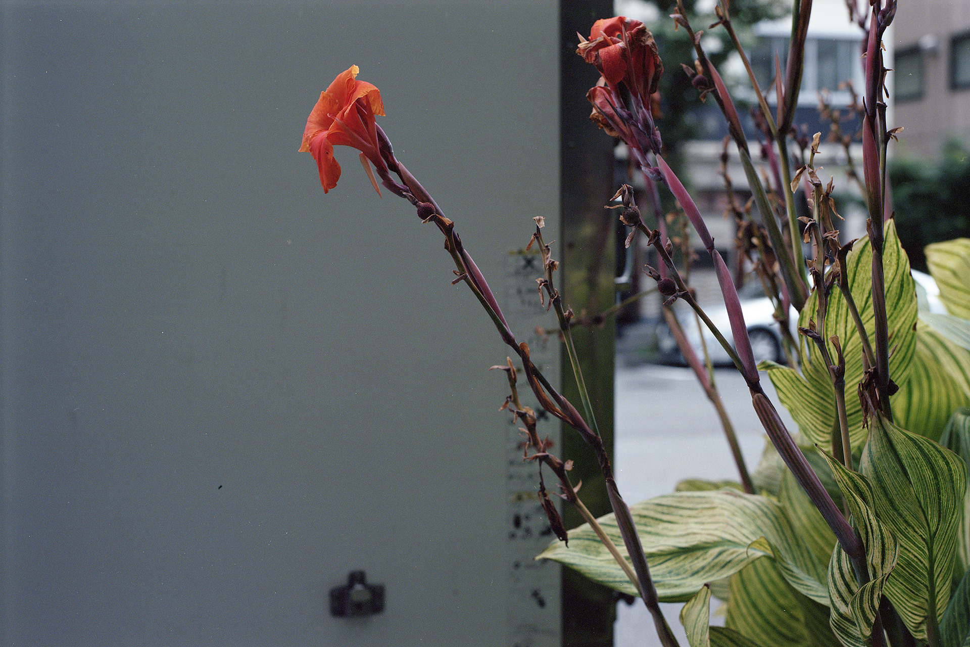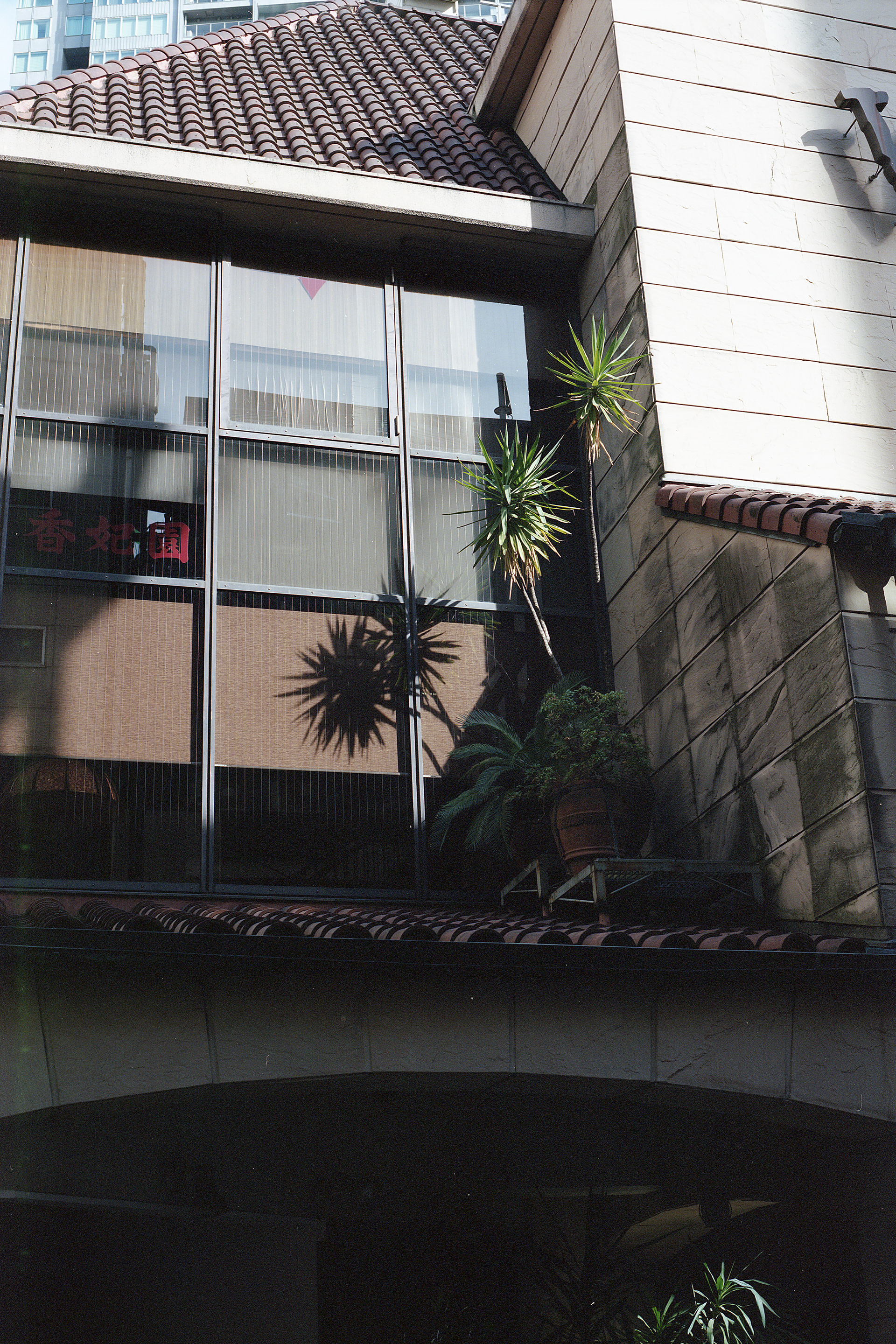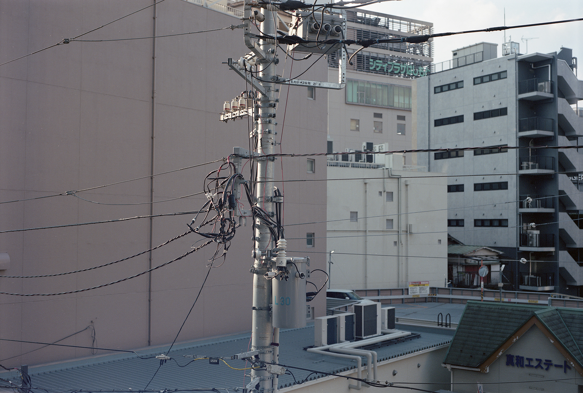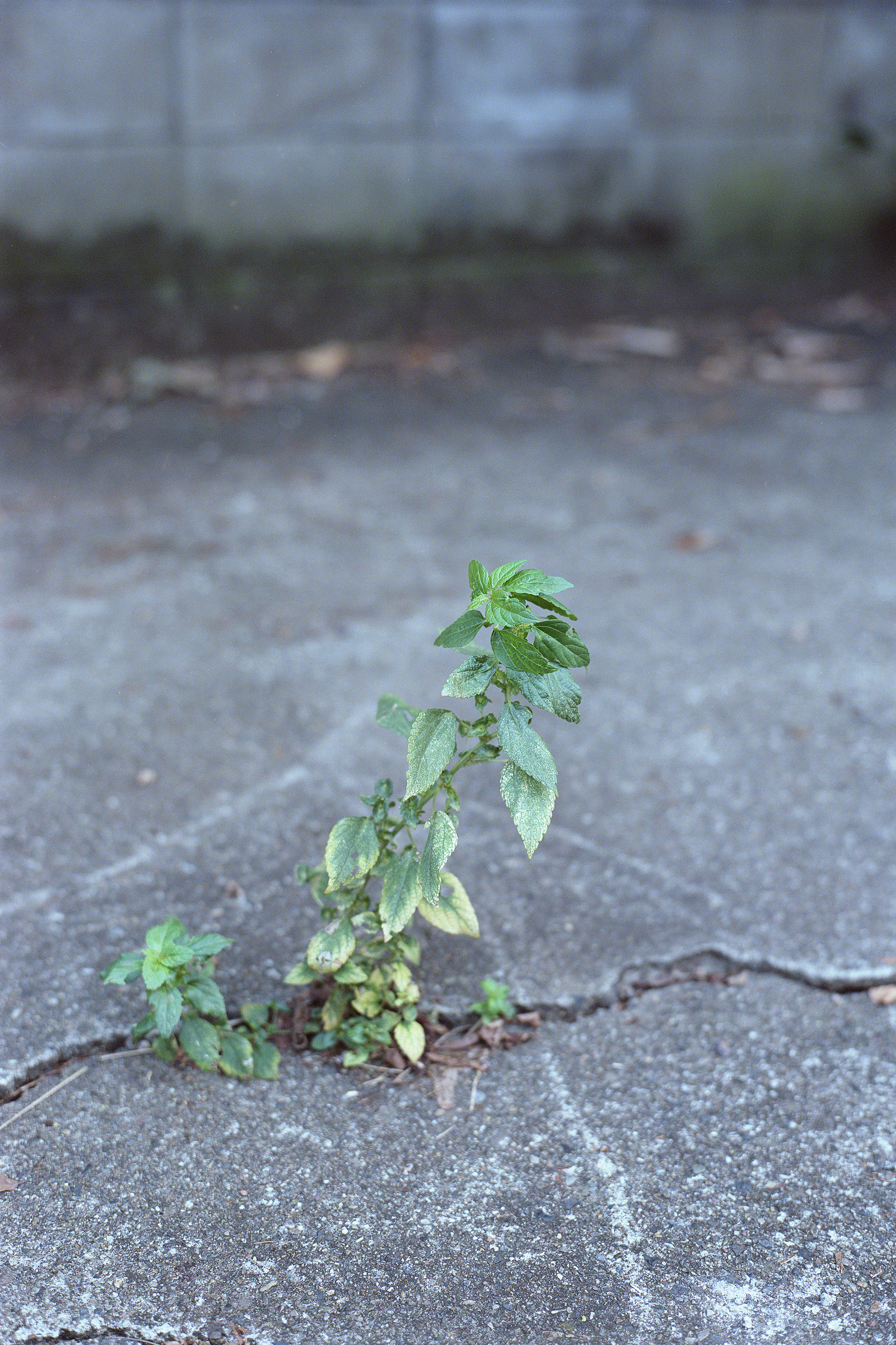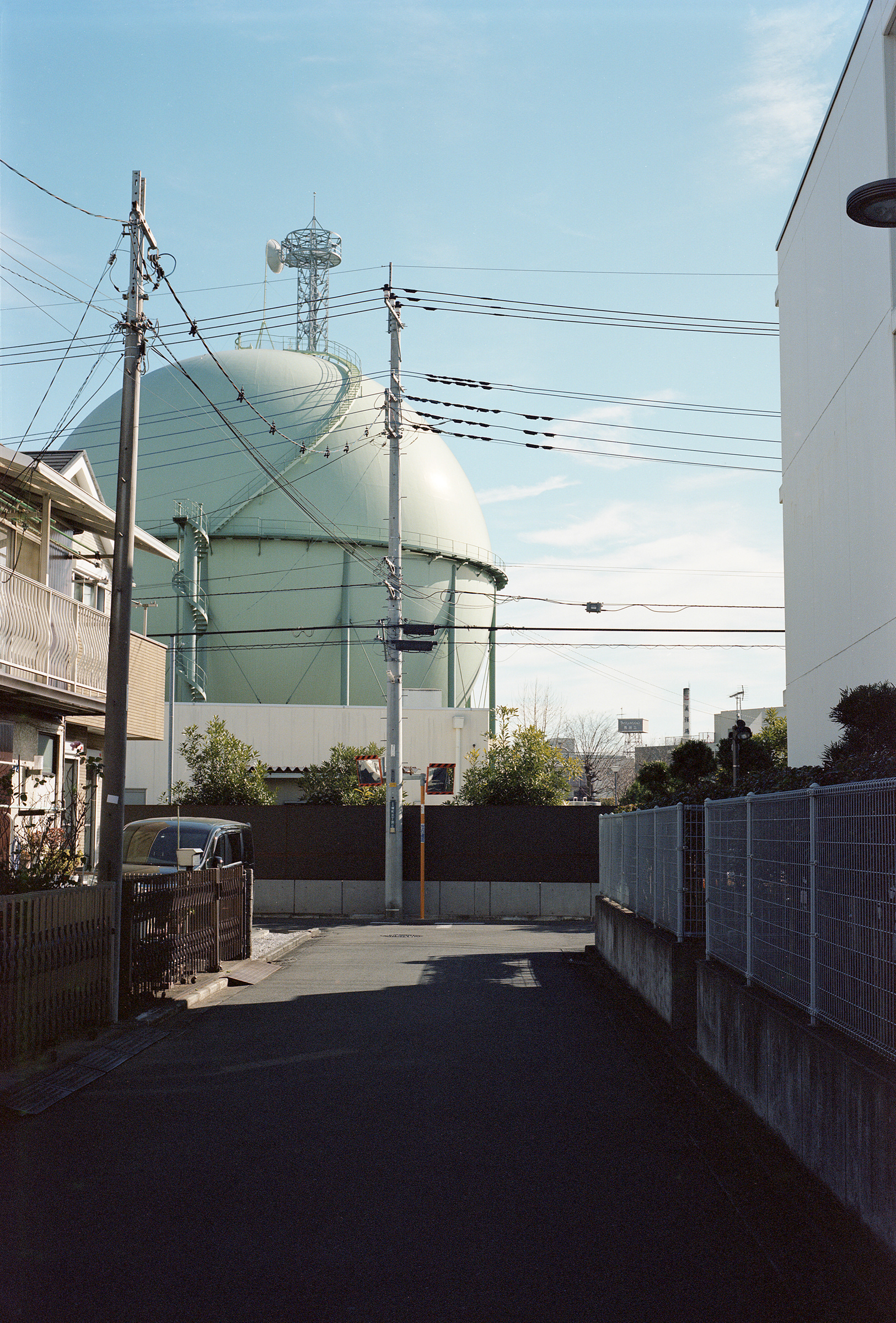 さらに外へ。商業施設の外壁に張られた網目に、風に運ばれてきた枯葉がひっそりと付着している。等間隔のメッシュを横切るように葉脈の微細な線が重なり、人工の秩序と自然の偶然が、図案の上で一枚の作法を編み直す。葉はただ留まっているのではない。そこに留まることで、視線の通り道をわずかにねじり、網の「機能」を別の意味の格子へと変換する。インデックス以上に、情動の付着は、物質的にも、大脳皮質的にも経験される。見逃してしまいそうな軽さと、見続けてしまう粘りーその矛盾に、写真はよく耐える。露光の一回性は、この偶然をやり直し不能の配置として歴史化し、網と葉の接触が、秩序/逸脱・制御/流動という対立軸を単なる概念ではなく、表面に貼られた緊張として保存する。