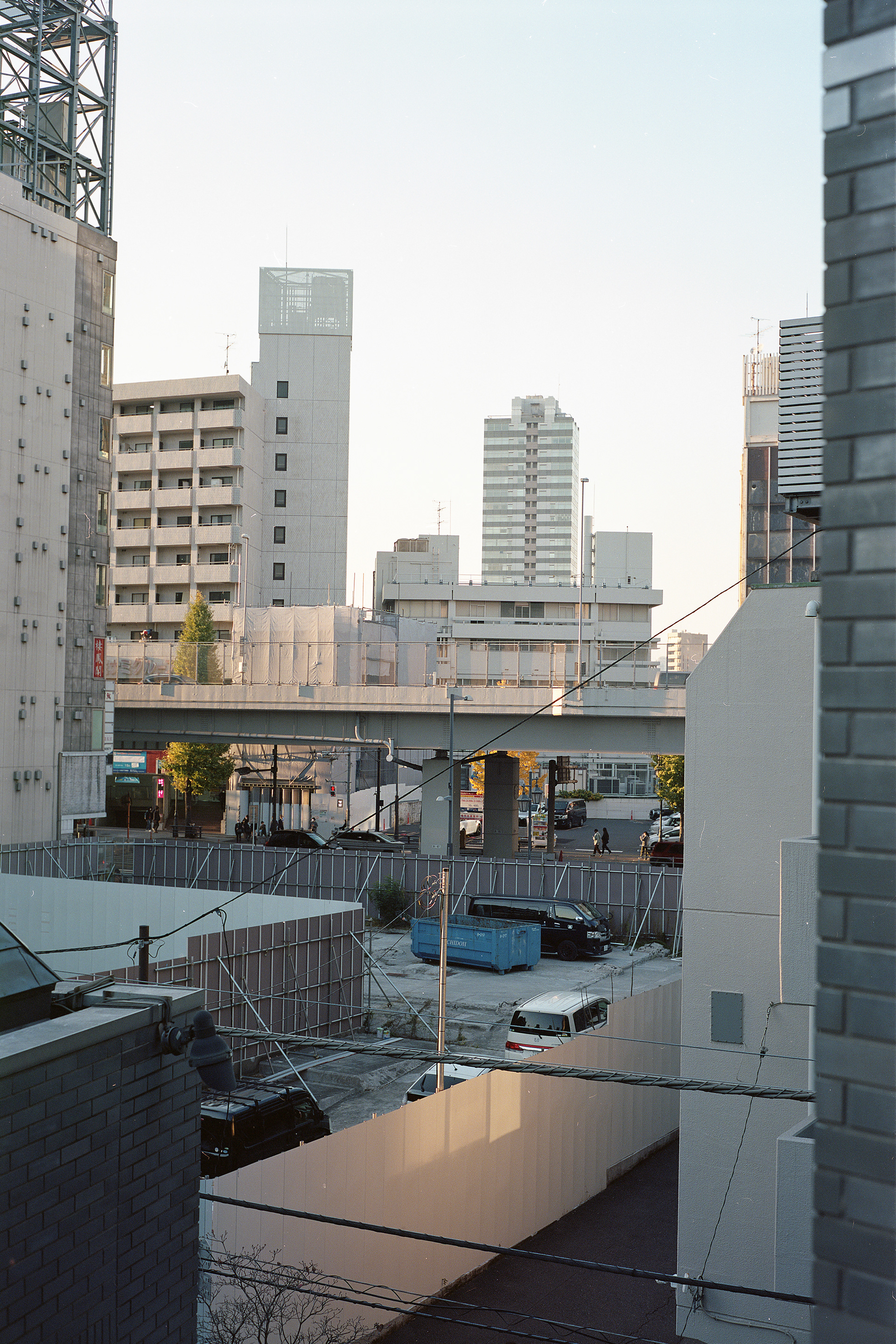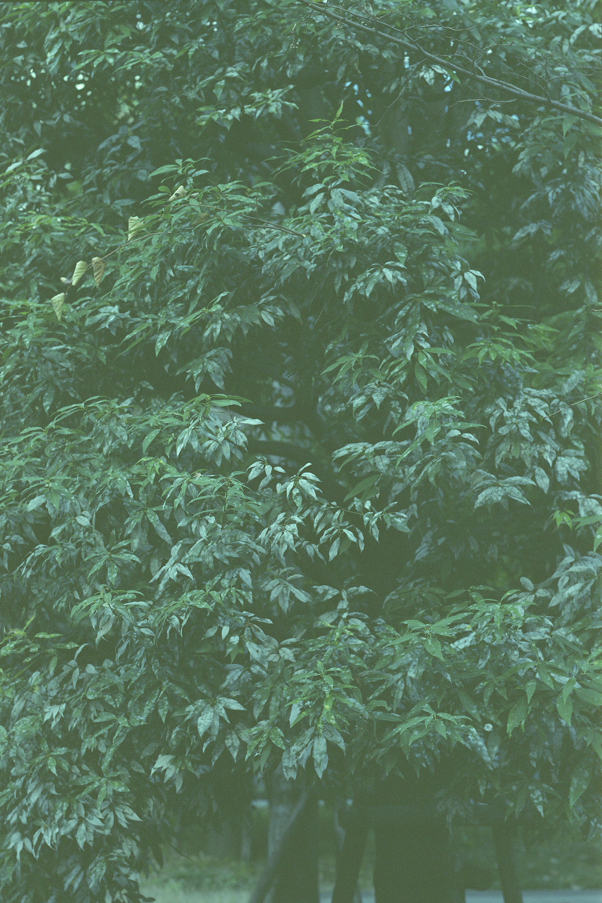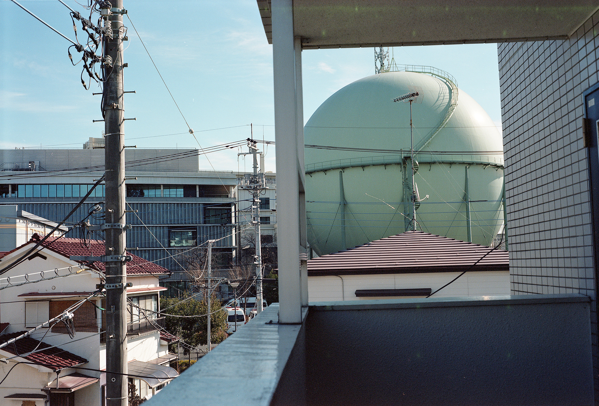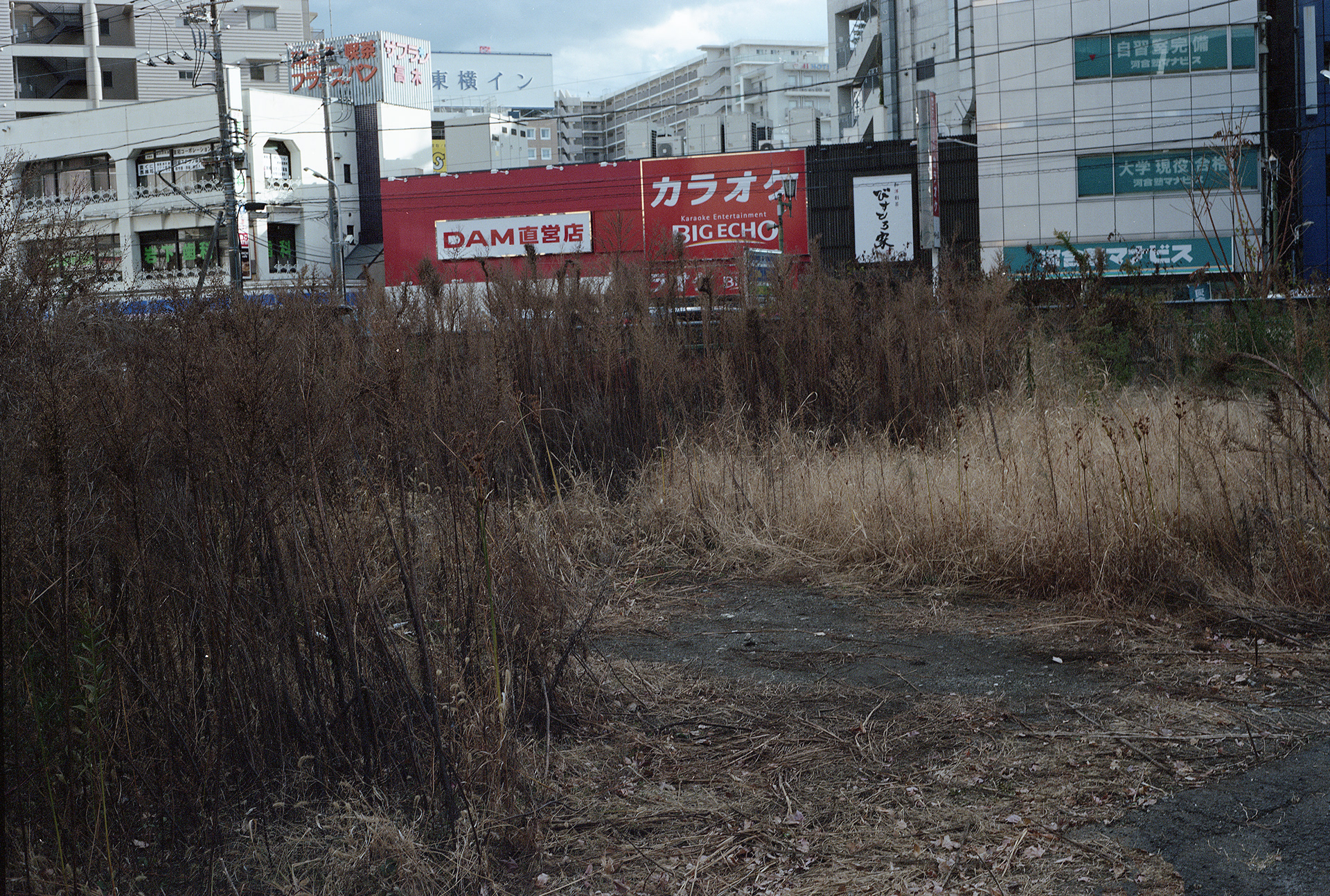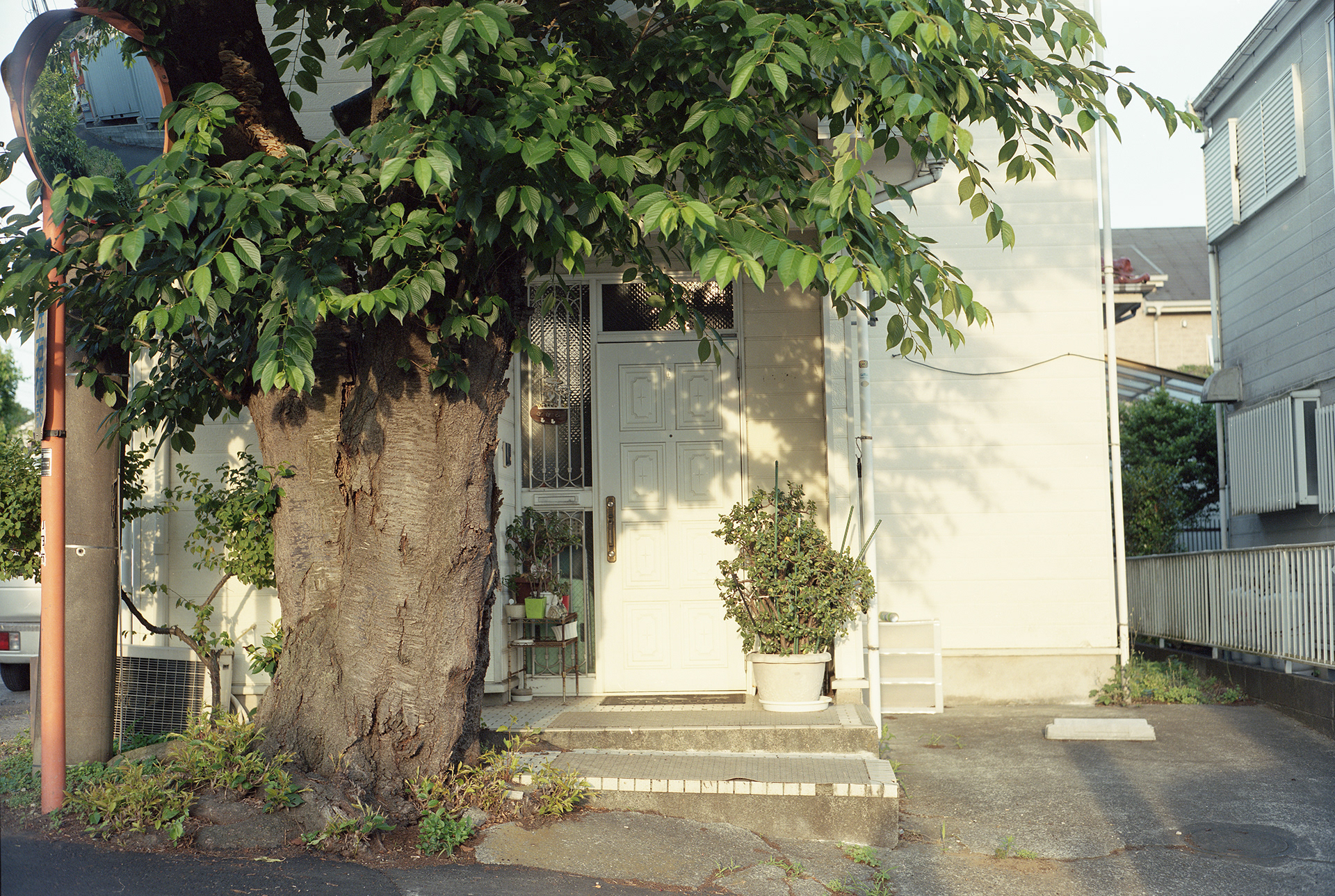 さらに外へ。商業施設の外壁に張られた網目に、風に運ばれてきた枯葉がひっそりと付着している。等間隔のメッシュを横切るように葉脈の微細な線が重なり、人工の秩序と自然の偶然が、図案の上で一枚の作法を編み直す。葉はただ留まっているのではない。そこに留まることで、視線の通り道をわずかにねじり、網の「機能」を別の意味の格子へと変換する。インデックス以上に、情動の付着は、物質的にも、大脳皮質的にも経験される。見逃してしまいそうな軽さと、見続けてしまう粘りーその矛盾に、写真はよく耐える。露光の一回性は、この偶然をやり直し不能の配置として歴史化し、網と葉の接触が、秩序/逸脱・制御/流動という対立軸を単なる概念ではなく、表面に貼られた緊張として保存する。