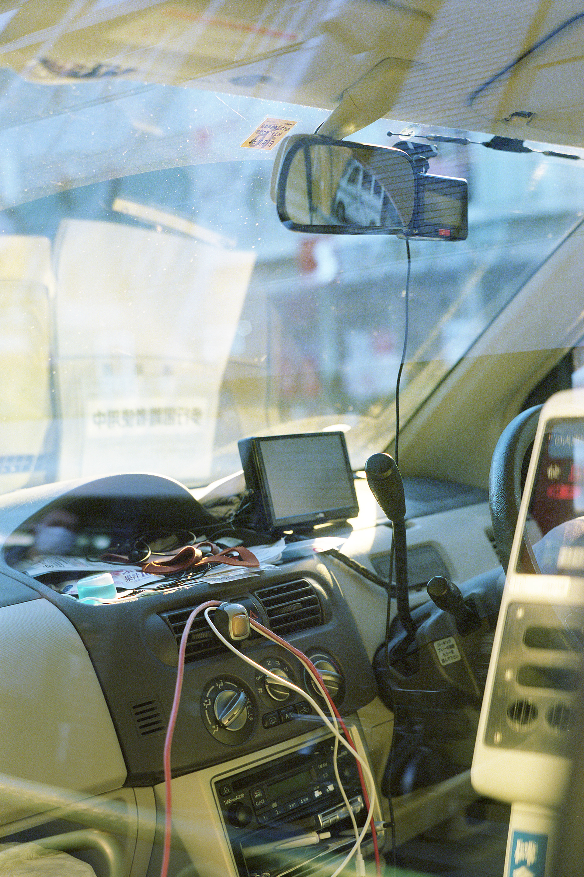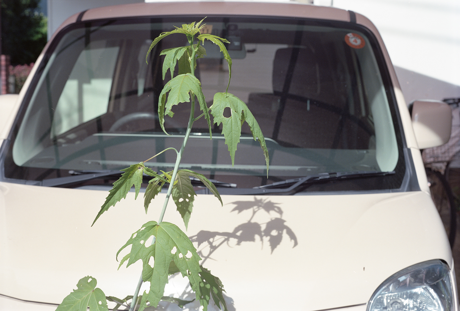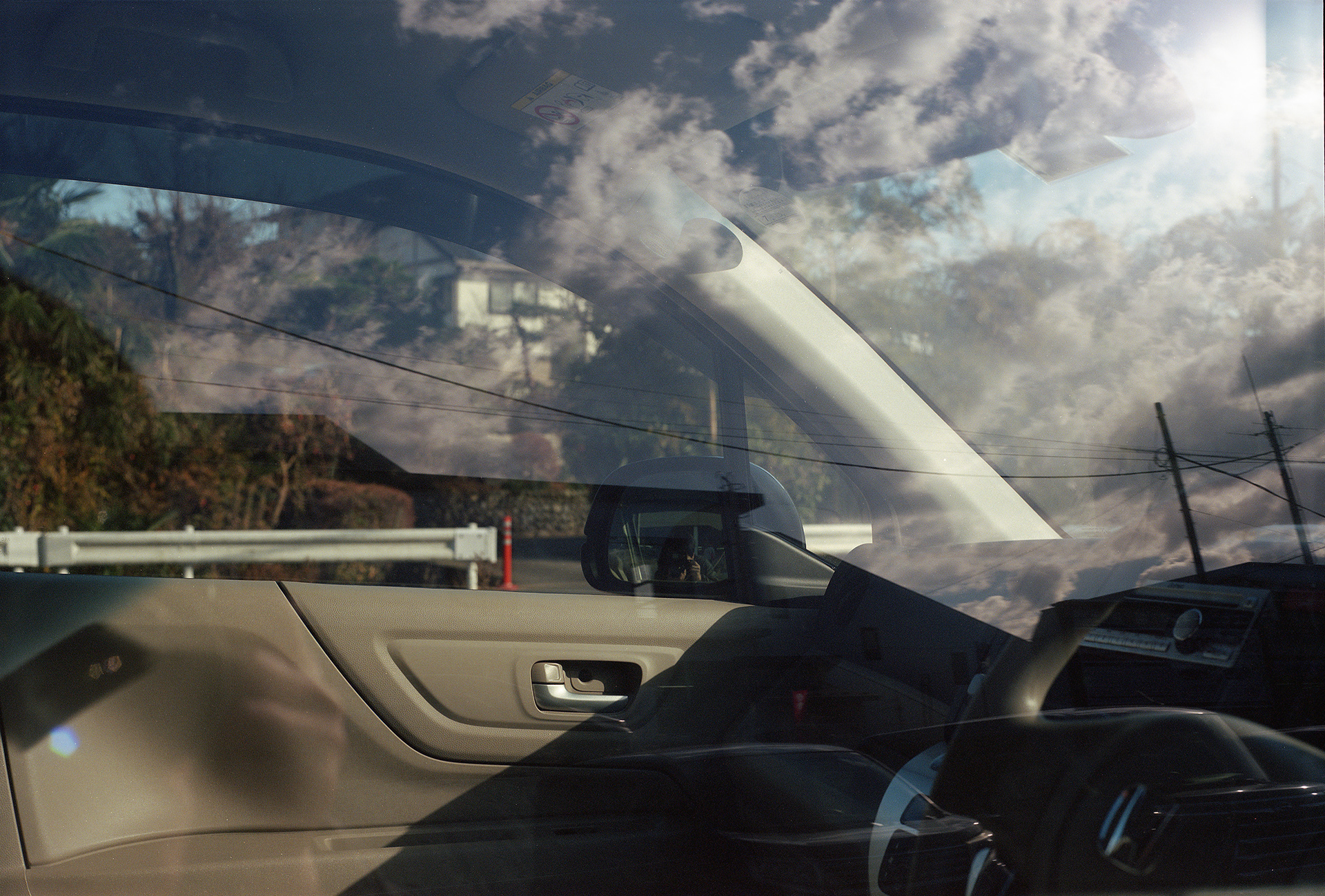 正午を少し過ぎた交差点で、くろがね色の乗用車のフロントガラスが、陽を受けて不意にひとつのスクリーンに変わる。透明であるはずのガラスは、透過と反射という二重の機能を同時に立ち上げ、通りの向こうの壁面やフェンス、パーキングメーター、封筒、向かい側の駐車同士までもを、車室内の影と重ね合わせて映しだす。ワイパーの軌跡に沿って薄い埃が線を描き、その上を店舗看板の赤がうっすらと塗り、通行人の残像が下段を滑ってゆく。見ているのは車内なのか、街の表面なのか—視線はその往還のさなかに宙吊りにされる。このとき「意味」は、対象の内部に眠る本質ではなく、ガラスという表面で生じる出来事として、遅れて到来する。反射の瞬きや汚れの粒は、説明を先取りしない小さな「刺激」として身体に沈着し、やがて言葉のほうがそれに追いつこうとする。街路の記号や車の銘柄、都市の昼の色温度を読みながらも、最終的に私たちを捉えるのは、シャッターの触発に呼応して現れる偶有的な反射の縁である。距離を保つことで立ち上がるはずの気配は、むしろ近接と重なり合って生まれ、「遠さのなかの近さ」として露光の一回性に刻まれる。眼は世界を見る器官であると同時に、世界に触れられる表面でもある。フロントガラスという二重のスクリーンは、まさしくその可逆性を可視化し、見ることを行為へ、感覚を運動へと引き戻す。